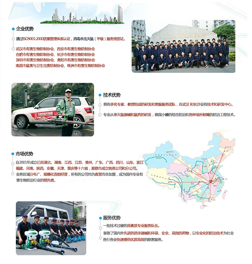 我們堅持“誠信、高效、安全、環(huán)保”的服務宗旨,所用器械均為世界優(yōu)質產品,所用藥物均系國家藥檢部門和衛(wèi)生防疫部門批準的安全、低毒的城市衛(wèi)生用藥,并根據具體作業(yè)環(huán)境和防治對象情況變化,制定具體防制方案,保證優(yōu)越的防治效果和人體安全。